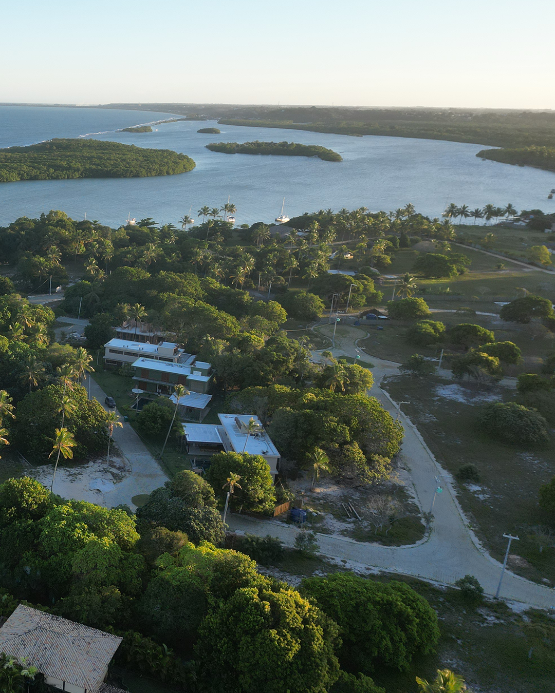 Localizada no condomínio fechado Vila da Vila, em região privilegiada no encontro do rio com o mar, em Santo André (BA).